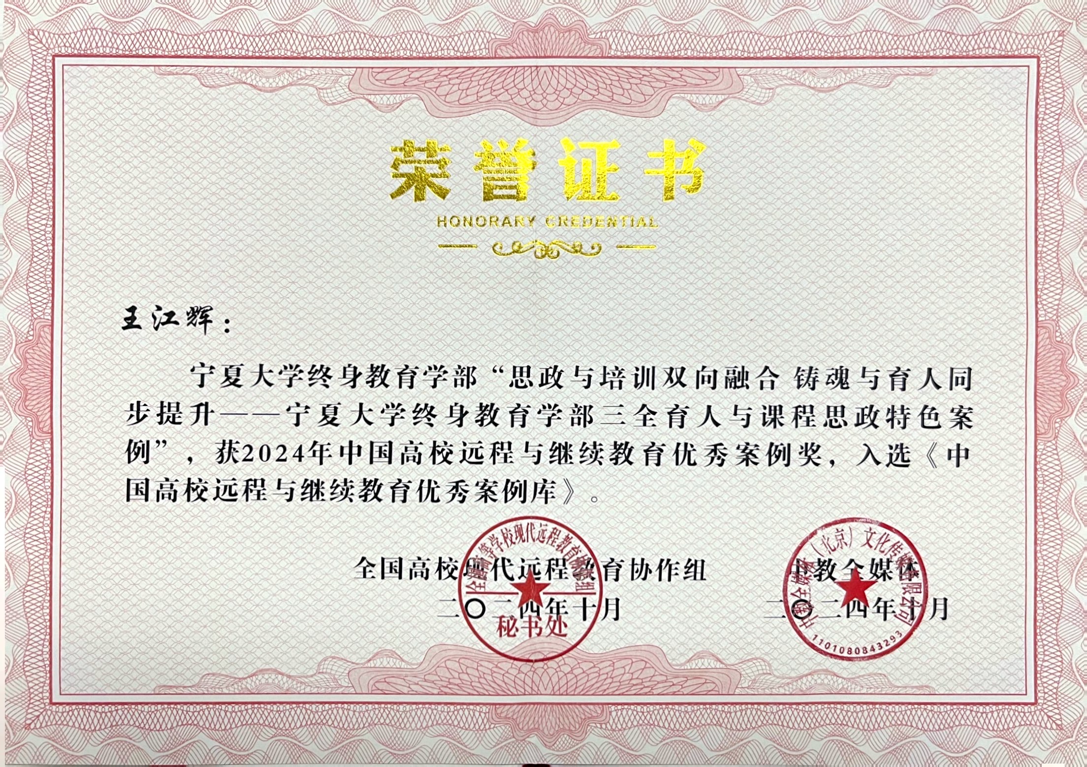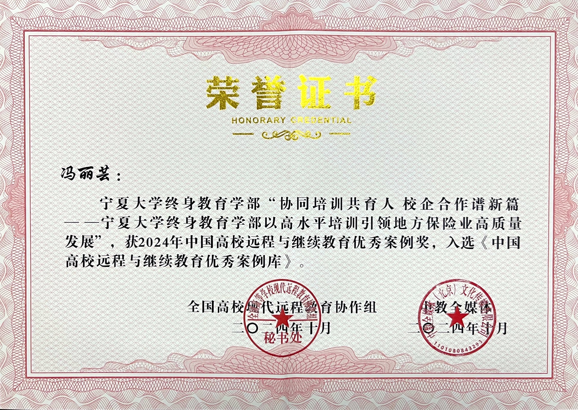 【beat365唯一官方网站新闻中心讯 终身教育学部】10月31日-11月1日,中国远程与继续教育大会在北京召开。由终身教育学部王江辉撰写的《思政与培训双向融合 铸魂与育人同步提升——beat365唯一官方网站终身教育学部三全育人与课程思政特色案例》、冯丽芸撰写的《协同培训共育人 校企合作谱新篇——beat365唯一官方网站终身教育学部以高水平培训引领地方保险业高质量发展》两个工作案例入选“2024年中国高校远程与继续教育优秀案例库”。