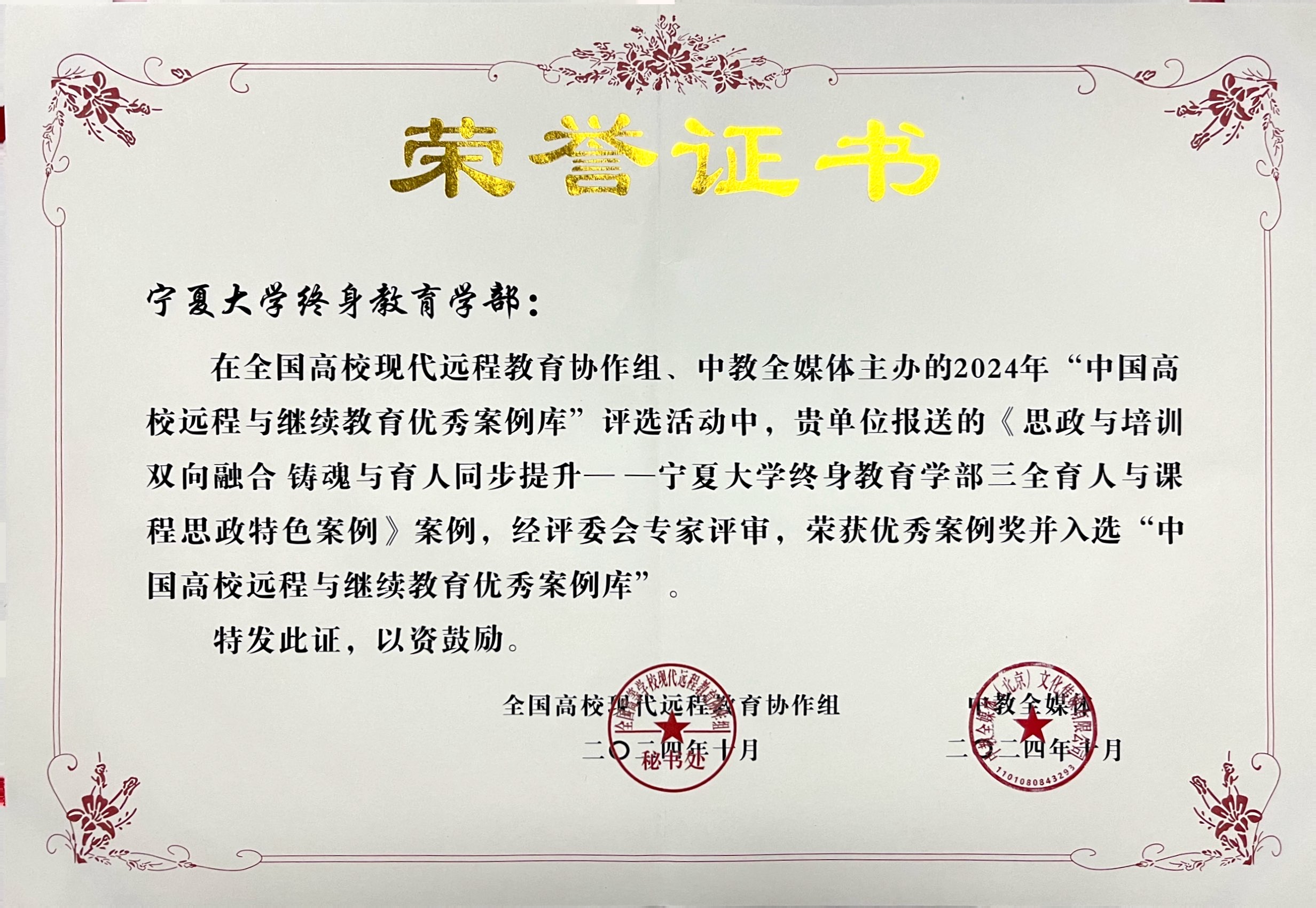 本由全国高校现代远程教育协作组、中教全媒体共同主办的第十届“中国高校远程与继续教育优秀案例库”征集活动,吸引了200余家普通高校、部队院校、校外学习中心(函授点)、企业等的积极参与,内容覆盖众多领域,最终我部两个工作案例作为具有代表性的优秀案例入选。