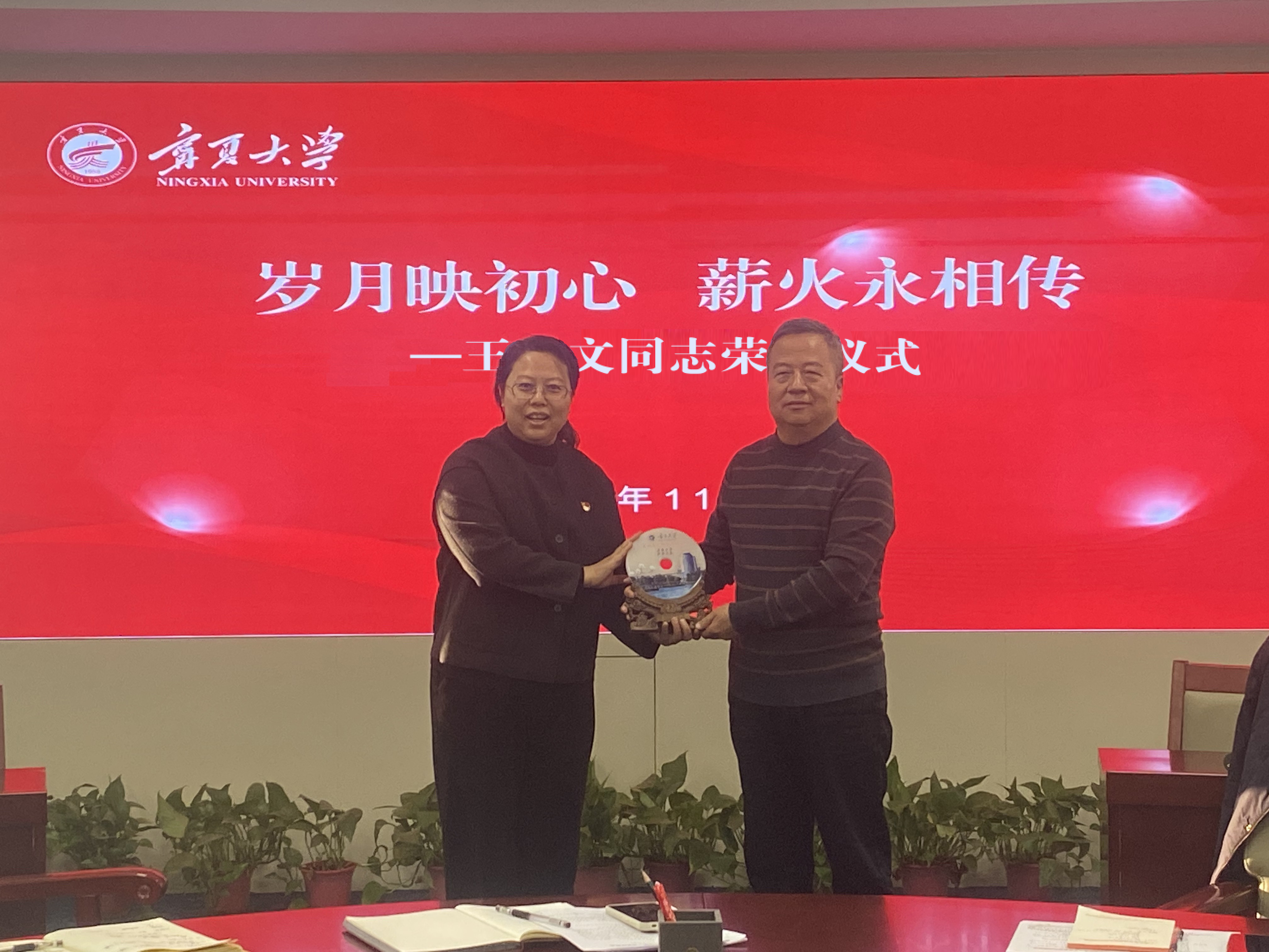 仪式上,蔡勇介绍了王海文同志的工作履历,张永丽代表组织部向王海文同志颁发了光荣退休纪念牌。