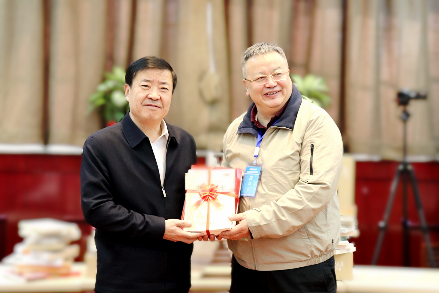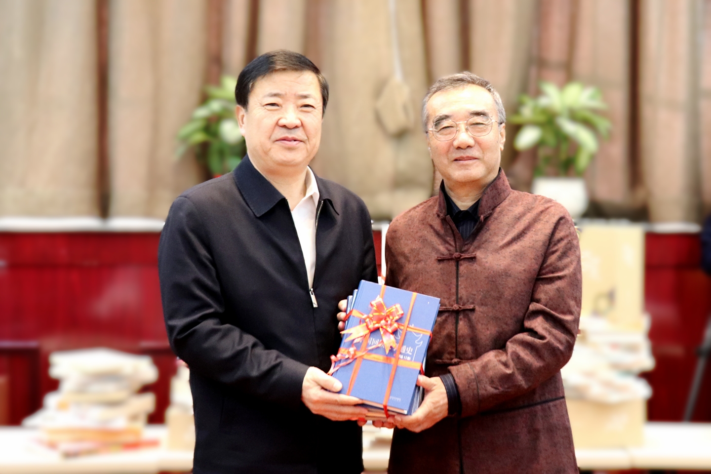 方铭、原宁夏文史馆馆长杨继国分别代表区内外专家学者向beat365官网赠书。