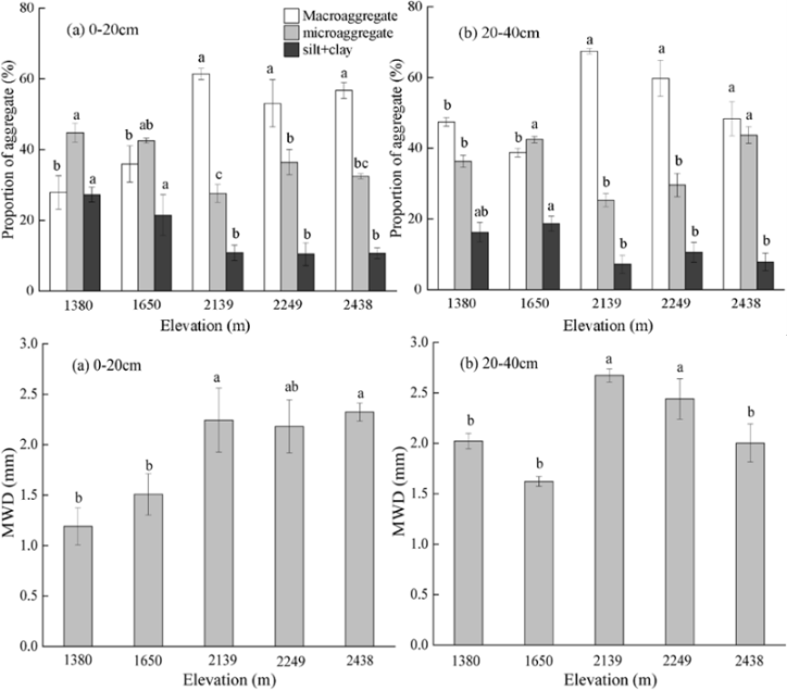 图1土壤团聚体组分、稳定性及有机碳化学组分随海拔升高的变化