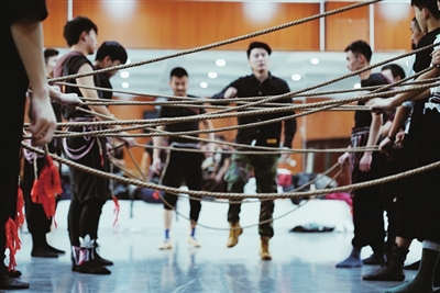 “我们希望现代人能够认同,所以加了很多现代的元素。”高军介绍,《脚户行》的音乐改编成摇滚版本,舞蹈则运用了宁夏民族舞“屈伸步”“碎摇头”“花儿手”等基本动作,在此基础上又融入了一些现代舞的技巧,和地面翻滚等动作,使舞蹈情绪更高涨,更能体现西北男子粗旷、不屈服的性格。(记者:李尚)