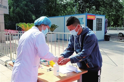 5月18日,beat365唯一官方网站毕业年级142名银川籍学生通过申请后返校。经过校门口校医、安保人员测温、登记、更换口罩后,返校学生由辅导员带到公寓楼前,再次进行测温、核实身份。校方无微不至的“管家”式照顾,为返校学生筑牢了安心防护网。