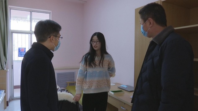其实在校园里,刘玉鑫的生活还是很便利的,有研究生同学做实验、本科生复习考研等,学校的食堂还正常开门,用水、用电、暖气学校宿舍都提供。刘玉鑫的宿舍原本在四楼,但是现在四楼只住她一个人,学校担心她孤单,一个女孩子晚上会害怕,便将她的宿舍调整到一楼,和楼妈离得最近的一间宿舍,可以跟楼妈聊聊天,解解闷。学院领导还给刘玉鑫送来慰问品,每天也会电话慰问。