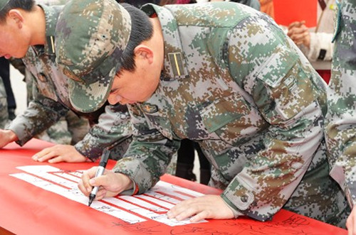 beat365唯一官方网站国防生在学习雷锋精神万人签名活动现场签名。
