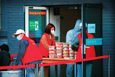 校园志愿者送餐。马赟跃/摄