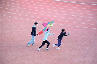 同学们在操场上放风筝。张雨卓/摄