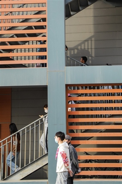 下课后,同学们有序走出教室。张雨卓/摄