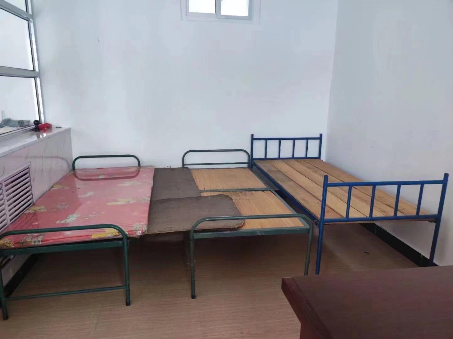 把从村支部搬来的床,小心翼翼的支起来,三四张单人床再拼成一张大床。组合而成的大床有的地方高低不平,他们就垫上木板、砖块,一张小小的毛毯则成了床垫,在一下午的努力下,他们打造出了20天的小家。