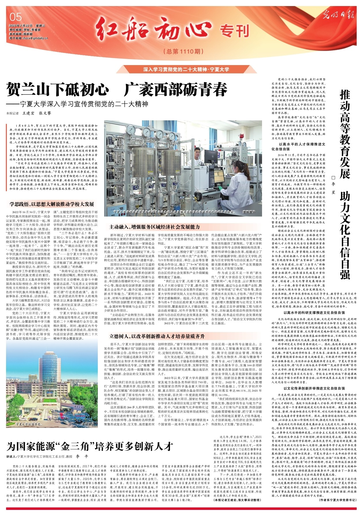 党的二十大报告提出,实施科教兴国战略,强化现代化建设人才支撑。宁夏地处国家能源“金三角”,在保障能源战略安全中举足轻重。如何紧紧围绕区域发展需求,培养更多现代产业技术人才,是我们一直探索的课题。