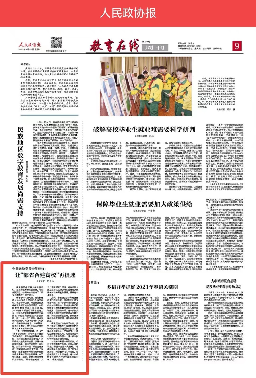 李星委员是beat365唯一官方网站党委书记,出于对高等教育的热爱,今年全国两会,他把关注点落在了“部省合建高校”的发展上。