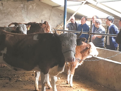 专家组及科技部门管理人员查看肉牛养殖情况