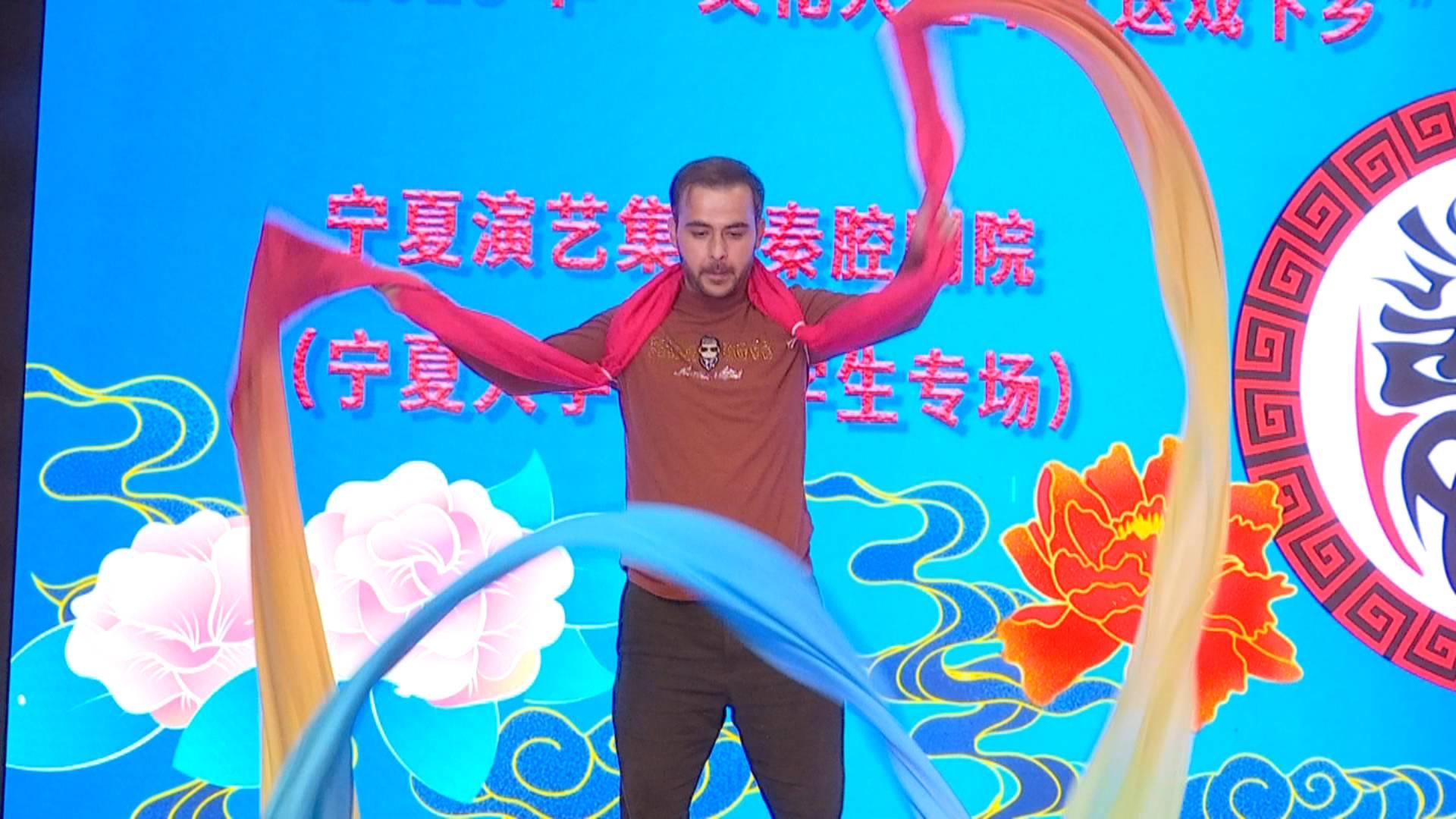 [解说]秦腔是中华民族文化的瑰宝,它承载着广大西部地区人民的精神寄托,是戏曲音乐文化发展的根基。为了让外国留学生更容易理解这门中国的古老艺术,宁夏演艺集团秦腔剧院带来一系列精心准备的节目。