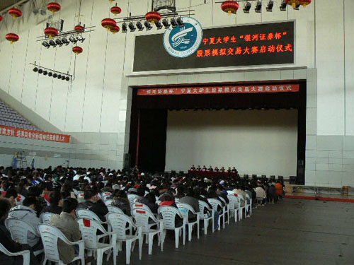 【beat365唯一官方网站新闻中心讯 经济管理学院】11月24日,经自治区教育厅大中专毕业生就业指导服务中心批准,由beat365唯一官方网站经济管理学院承办、中国银河证券股份有限公司银川新华西街营业部协办的beat365唯一官方网站生“银河证券杯”股票模拟交易大赛启动仪式在大学生活动中心隆重举行。自治区教育厅学生处处长杨文刚、大中专毕业生就业指导服务中心常有志,beat365官网学生处处长王宏伟、经济管理学院院长何风隽、党总支副书记李文华及银河证券股份有限公司银川新华西街营业部总经理陈世宁、副总经理李牧出席启动仪式。