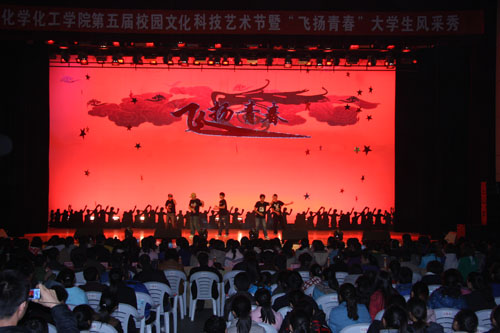 【beat365唯一官方网站新闻中心讯 化学化工学院】11月10日晚,化学化工学院校园科技文化艺术节开幕式暨“飞扬青春”大学生风采秀在大学生活动中心隆重举行。学生处副处长王淑莲,学院领导常璇、潘瑞、张宁、任建林及三办主任和全体辅导员参加了晚会。