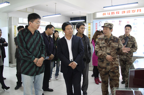 文艺演出前,音乐学院党总支书记王海文还带领学院师生参观了爱国主义教育基地宁夏军区给水团展馆,认真观看了《宁夏军区给水团百井扶贫工程纪录片》,并题写“光荣集体、英雄团队”与部队官兵共勉。