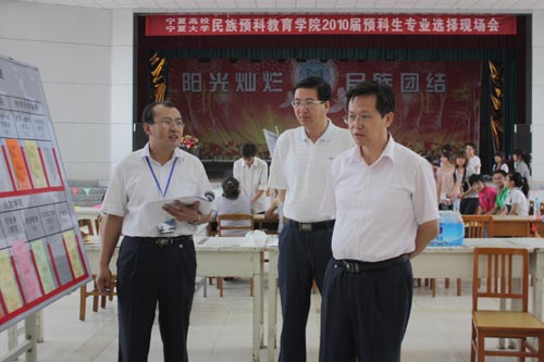 校党委副书记赵利宁,学生处处长王宏伟、副处长王志霄亲临现场指导工作。民族预科教育学院领导郝育兰、王俊、田富军、石慧刚、马玉玲、马军、尹军利参加专业选择工作。