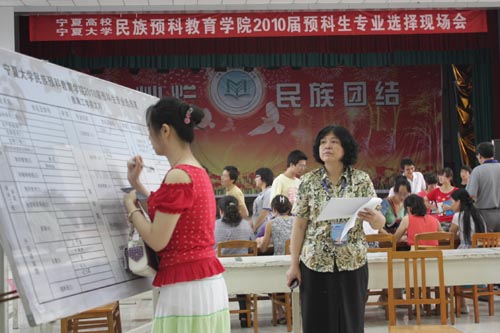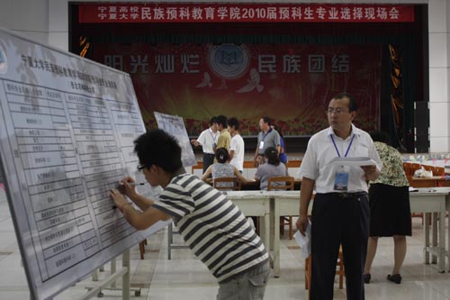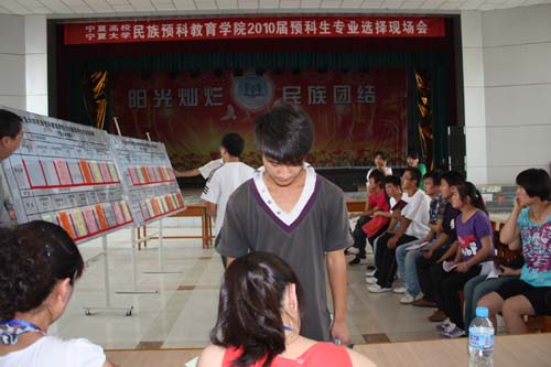 【beat365唯一官方网站新闻中心讯 尹军利 王学宏/ 文马占俊/图】6月25日上午,来自beat365唯一官方网站、宁夏医科大学、宁夏师范学院、西安电子科技大学、西北农林科技大学、淮海工学院、盐城师范学院、盐城工学院八所院校的1231名少数民族预科生在南校区大学生活动中心顺利确定本科专业,民族预科教育学院2010届预科生专业选择工作圆满结束。