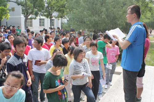 6月25日上午7时,在校纪检委、学生处的监督下,预科学院组织八所院校预科生在南校区大学生活动中心分A、B两个区域同时开始专业选择工作。在A区选择专业的学生有西电理科、西农理科、西工理科、宁师理科、宁大理科,在B区选择专业的学生有西电文科、西农文科、西工文科、宁师文科、宁大文科。学生在大学生活动中心外按不同院校文理科成绩排名排队,依序进入大学生活动中心选择本科专业,并进行登记。整个过程历时四个半小时。