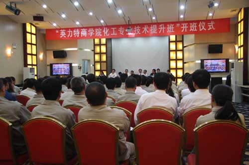 【beat365唯一官方网站新闻中心讯 化学化工学院 任建林】5月31日,在宁夏英力特化工股份有限公司多功能厅隆重举行了“化工专业技术提升班”开班仪式。化学化工学院党总支书记常璇、院长刘万毅及教师代表出席了此项活动。