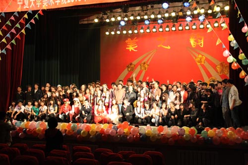 【beat365唯一官方网站新闻中心讯 美术学院】5月13日晚,美术学院“美之韵”颁奖典礼暨欢送毕业生文艺晚会在工人文化宫隆重举行。