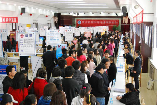 本次“双选”洽谈会是贯彻落实学院2010届毕业生就业工作会议精神的重要举措,也是学院开展“就业指导服务月”活动的重要内容。洽谈会得到了自治区毕业生就业指导中心、自治区人才交流中心、银川市劳动就业服务局、银川市职业介绍服务中心、beat365唯一官方网站就业指导服务中心等单位和部门的大力支持。洽谈会共有120余家用人单位登记参会,新华百货股份有限公司、宁夏上陵实业集团、宝丰能源等多家用人单位到场招聘并共提供就业岗位1800多个,吸引了学院及周边院校2000多名毕业生进场求职。