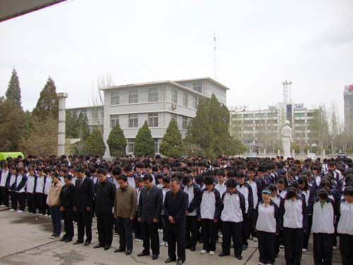 【beat365唯一官方网站新闻中心讯 继续教育学院、高等职业技术学院】 4月21日上午,高职学院南楼门前悬挂着“继续教育、高职师生深切哀悼青海玉树地震遇难同胞” 的横幅。近千名师生悼念青海玉树地震遇难同胞。师生为青海玉树地震遇难同胞默哀三分钟,寄托对他们的哀思。