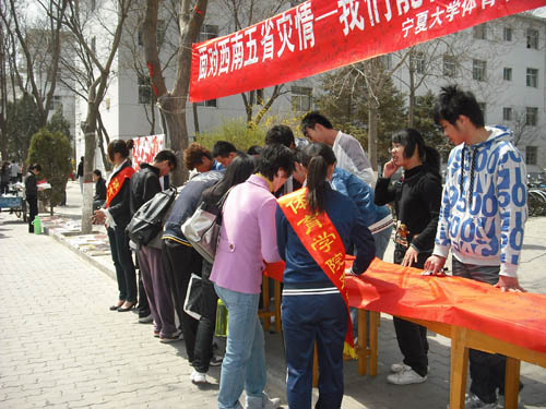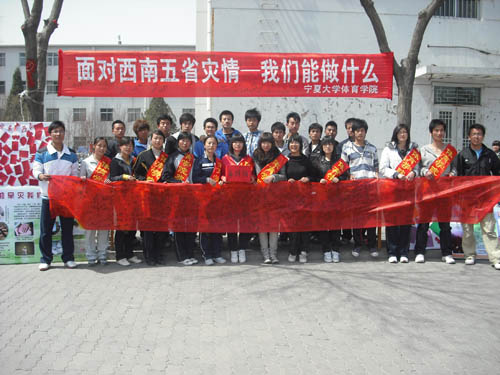 【beat365唯一官方网站新闻中心讯 体育学院】近期,我国西南部遭受百年不遇的旱灾,体育学院学子时刻关注着灾情的变化,4月14日上午,学院团委、学生会在校本部B区举行了以“心系西南旱情、倾注爱心之水”为主题的募捐活动,同学们在“面对西南灾区,我们能做什么”的条幅上签满了名字。此次活动共筹集捐款800余元。善款虽少,但它却倾注了同学们的爱,体现了体院学子心想灾区、情系灾民的爱心。