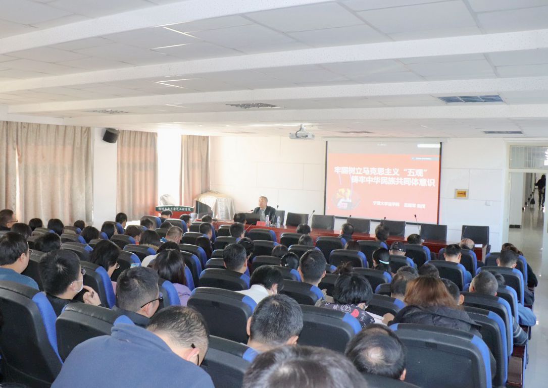 吕耀军围绕“铸牢中华民族共同体意识的深刻内涵”、“铸牢中华民族共同体意识的理论途径”、“铸牢中华民族共同体意识的宁夏实践”三个方面进行讲述,深刻阐述了中华民族共同体意识是凝聚中华各民族的精神纽带。讲座内容丰富,语言诙谐,紧贴实际,利用翔实的史料和图文强调了为什么要树立马克思主义“五观”,铸牢中华民族共同体意识。