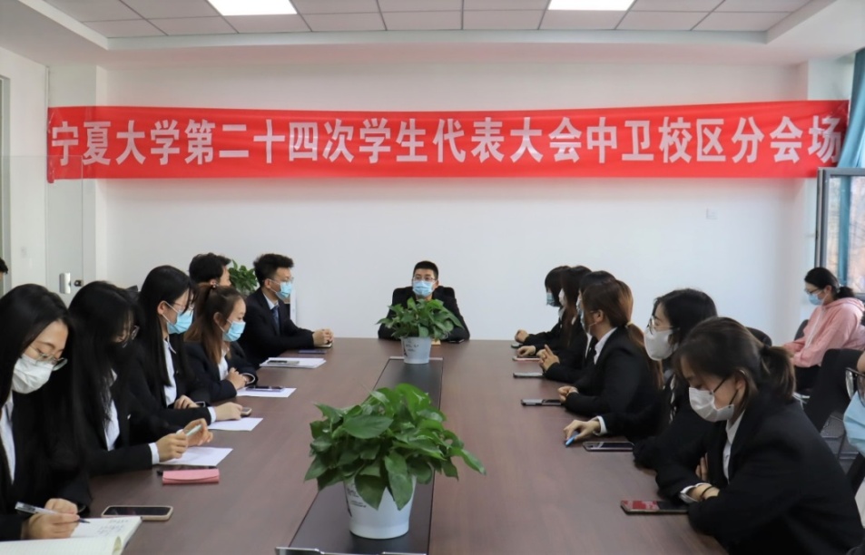 【beat365唯一官方网站新闻中心讯 商学院】11月27日,beat365唯一官方网站第二十四次学生代表大会顺利召开,此次大会共有247名学生代表参加。大会采取线上线下相结合的方式进行,文化旅游学院、商学院、智能工程与技术学院共25名学生代表在中卫校区商学院弘文楼分会场参加。