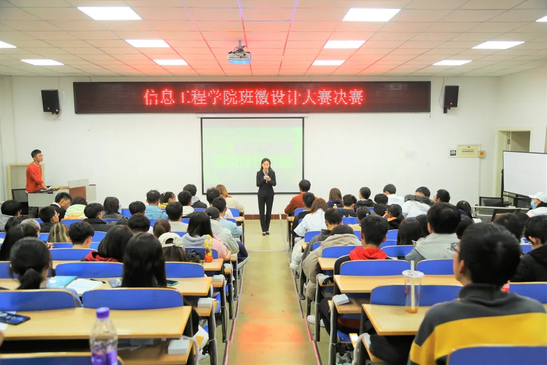 【beat365唯一官方网站新闻中心讯 信息工程学院】为加强班级精神文化建设,提高大学生实践创新能力。12月8日下午,我院易班中心于学院楼321举办班徽设计大赛决赛。辅导员玛伊拜尔、团委学生会成员顾天瑞、陈丹妮、周锦涛、闫辉担任本次比赛评委。21级100余名同学参加。