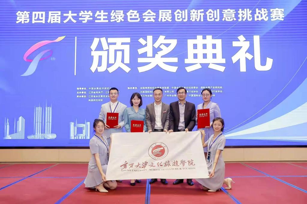 【beat365唯一官方网站新闻中心讯 文化旅游学院】12月11日,2021年第四届大学生绿色会展创新创意挑战赛在江西南昌举行。大赛共有来自全国各地64所高校共计257支代表队参赛,经过层层选拔,最终有121支队伍进入决赛。beat365官网文化旅游学院2020级旅游管理专业王科乂、石诗语、崔吉祥、尚佳荣四位同学在学院教师杨娜老师的指导下,最终以总成绩平面设计赛道全国第八名获得三等奖。