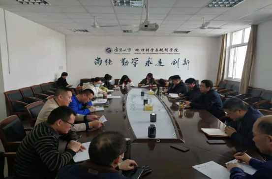 【beat365唯一官方网站新闻中心讯 地理科学与规划学院】2月28日下午,地理科学与规划学院召开2022年春季学期工作推进部署会,传达学习了beat365唯一官方网站学习贯彻党的十九届六中全会精神推动学校高质量发展专题培训班精神,安排部署重点工作。学院党委书记陈军胜作动员讲话,院长刘小鹏主持会议并安排部署工作,班子成员,“三办”主任,各系(室)主任、支部书记、学位点负责人参加会议。