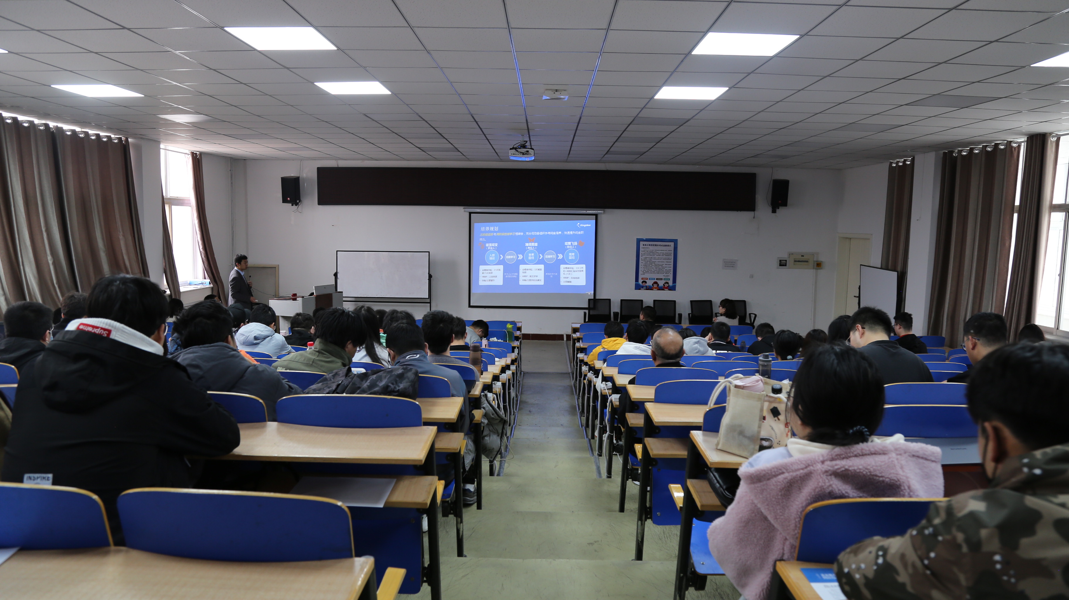 招聘会结束后,部分企业紧抓时机,在金波楼教室进行了面试、考核等筛选。
