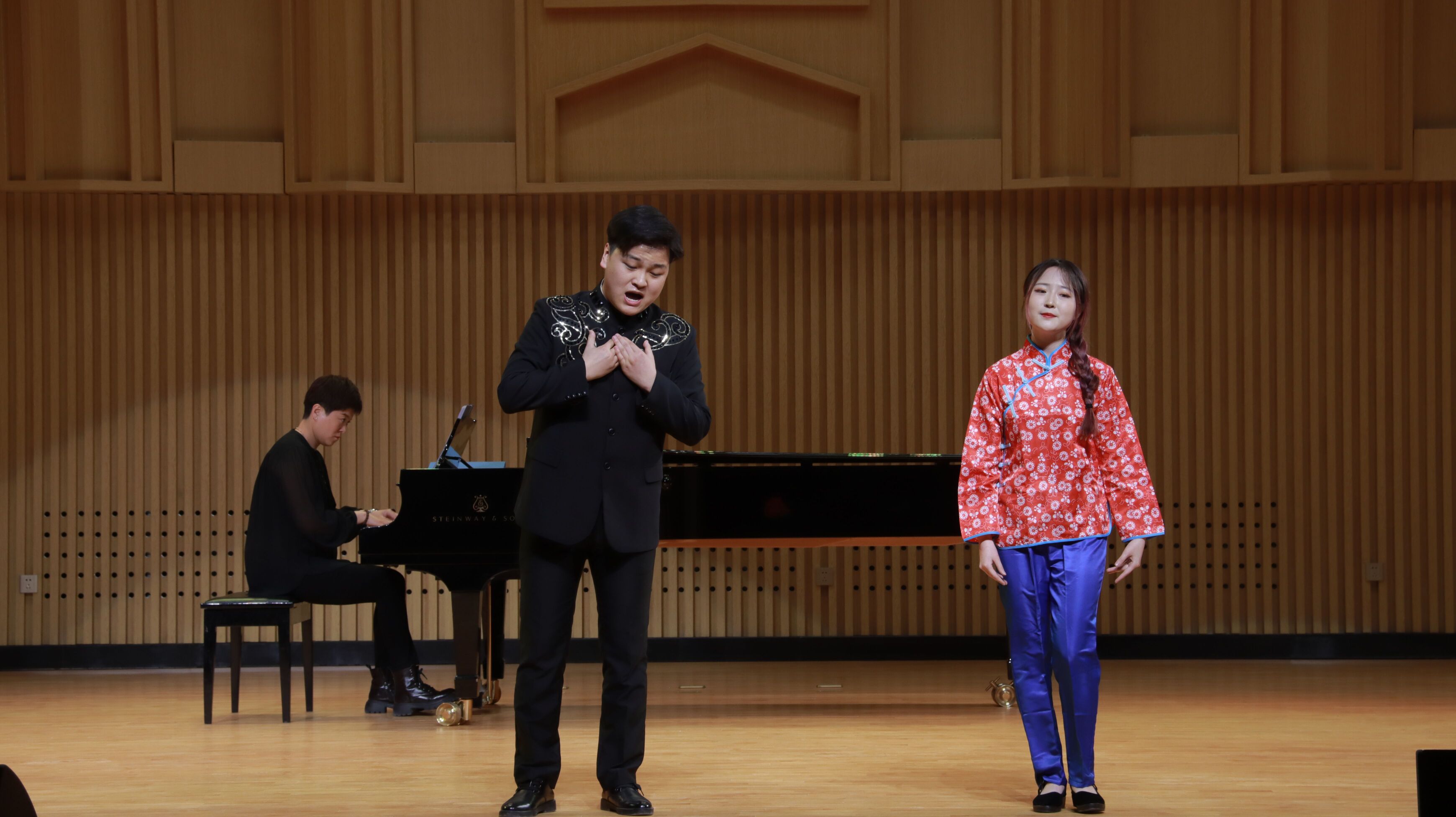 【beat365唯一官方网站新闻中心讯 音乐学院】beat365唯一官方网站音乐厅华灯明亮,气氛热烈。3月10日晚,由音乐学院主办,陈宏创新工作室和中华民族共同体研究院承办的beat365唯一官方网站《爱我中华》民族重唱作品精彩上演,17首各民族重唱作品构成了一场红色视听盛宴,这也是beat365唯一官方网站音乐厅“换装”后全校师生期待已久的首场演出。