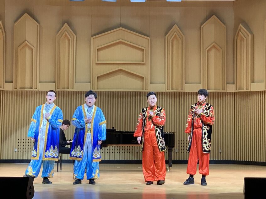 音乐会现场,学生们身着民族特色服饰闪亮登场。男女声对唱《敖包相会》《想亲亲》《龙船调》,女声重唱《灯碗碗开花在窗台》《年轻的朋友》《知道不知道》《渔家姑娘在海边》,男声重唱《烽火狼牙山》《鸿雁》《忠实的心儿想念你》《阿拉木汗》《尕老汉》,民族歌剧《你是我我是你》《花儿为什么这样红》《马铃响来玉鸟唱》《天边有颗闪亮的星》等来自蒙古族、土家族、达斡尔族、维吾尔族等少数民族的歌曲和山西、江浙等地民歌,表达了对美好生活的向往,爱国主义精神的歌颂以及中华民族一家亲、同心共筑中国梦的共同心愿,引起了全场观众的情感共鸣。大合唱《爱我中华》更是将现场气氛推向了高潮,令在场师生再次深刻感受到了中华民族大家庭血脉相连的深厚情感,赢得热烈掌声。