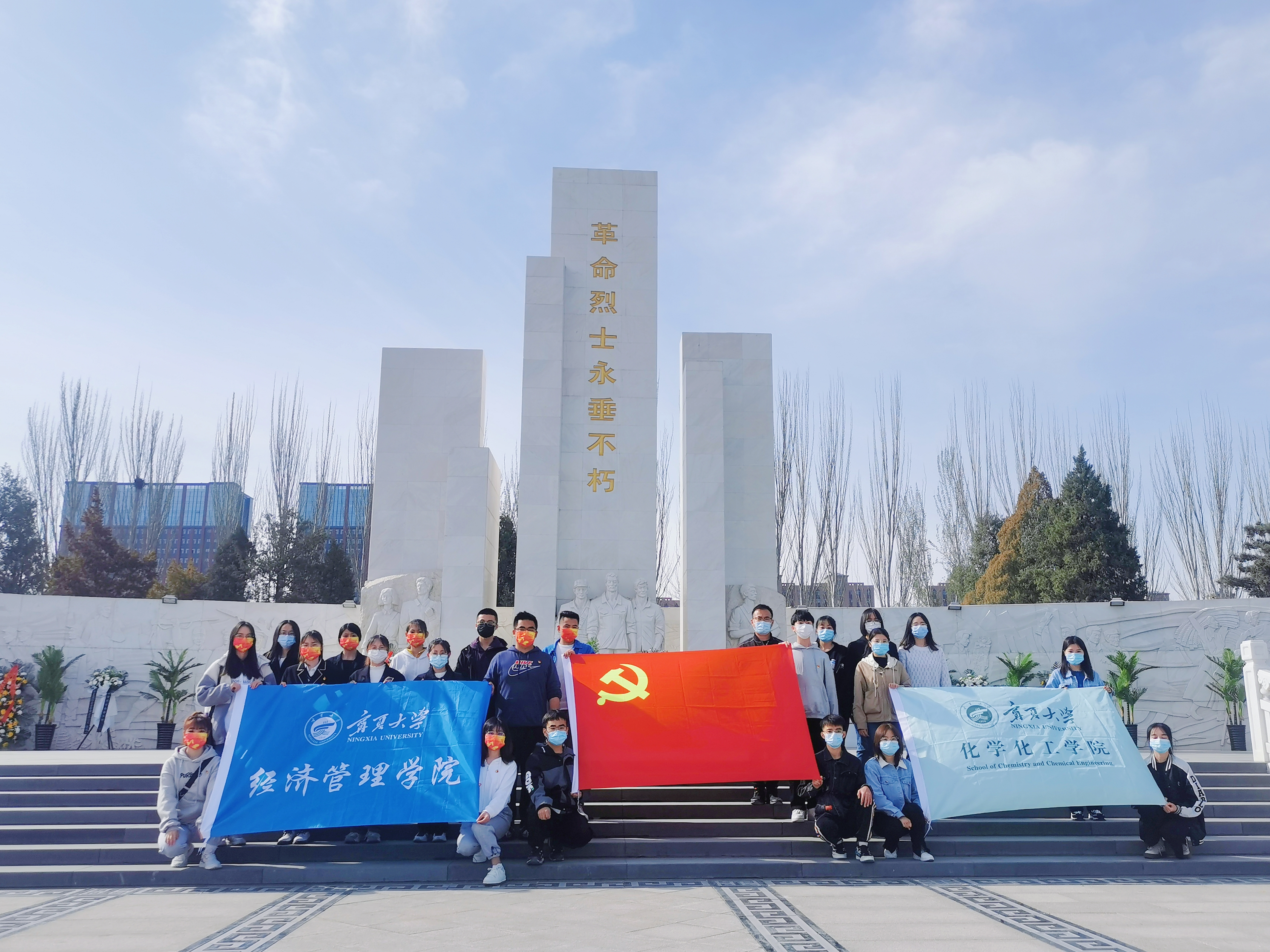 【beat365唯一官方网站新闻中心讯 经济管理学院】在清明节即将来临之际,为缅怀先烈,寄托哀思,抒爱国之情,树报国之志,经济管理学院会计学本科生党支部与化学化工学院化学技术学生党支部联合举行了“清明节烈士陵园祭扫”活动。学院部分党员和团员代表前往银川烈士陵园参加活动。