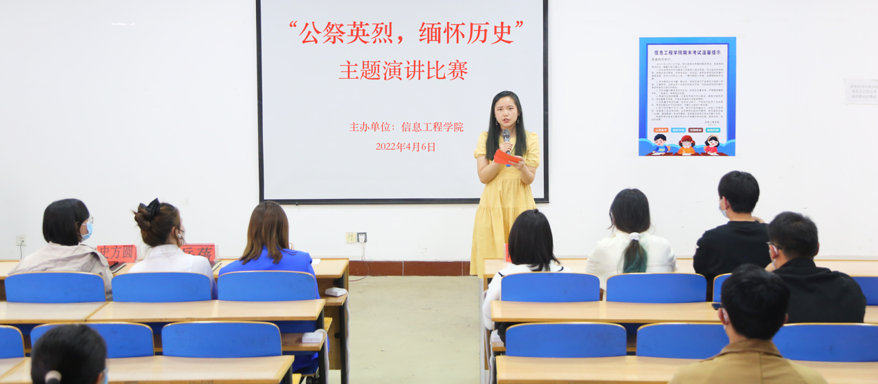 【beat365唯一官方网站新闻中心讯 信息工程学院】为使同学们赓续英烈精神,汲取奋进力量,4月6日下午,信息工程学院在金波楼321开展“公祭英烈,缅怀历史”演讲比赛。为做好疫情防控工作,避免人员聚集,部分同学在线上进行观看。辅导员玛伊拜尔,兼职辅导员岳蓓、史方圆,主席团成员顾天瑞、陈霄、贾倩倩担任评委。