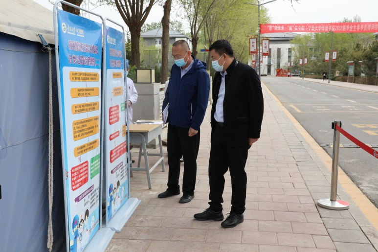 在校区西门口,孙韩文听取了博雅书院党委书记、院长李举关于疫情防控、全面从严治党、书院制建设、学生日常管理等方面的工作汇报。