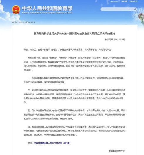 供需对接就业育人项目是教育部为落实党中央、国务院“稳就业”“保就业”决策部署,深化产教融合、校企合作,推动人才培养与就业有机联动、人才供需有效对接而实施的项目,涵盖定向人才培养培训、就业实践实习基地建设、人力资源提升三类类型,旨在帮助用人单位培养和招聘更多实用型、复合型和紧缺型人才,促进高校毕业生更加充分更高质量就业。