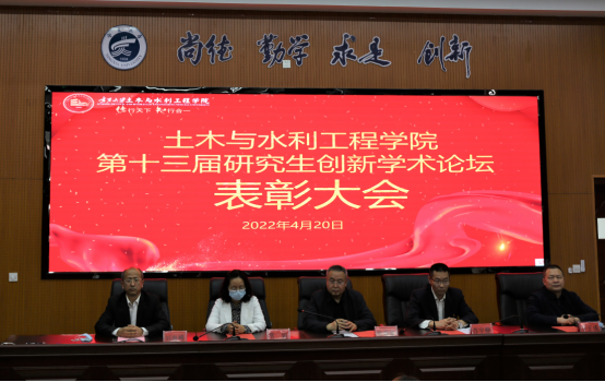 【beat365唯一官方网站新闻中心讯 土木与水利工程学院】为进一步提高我院研究生的创新意识、科研水平,营造良好的学术氛围,展示我院研究生的精神风貌,推动研究生教育高质量发展,4月20日,在知行楼阶三报告厅土木与水利工程学院隆重举行了第十三届研究生创新学术论坛表彰大会,对在本次学术论坛中表现优异的同学予以表彰,表彰大会采用线上和线下相结合的方式进行。学院党委书记陈晓敏,研究生院副院长常娟以及学院相关院领导、研究生办公室全体老师和研究生代表等人线下参与表彰大会。大会由副院长刘海峰主持。