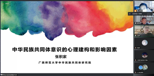 张积家教授介绍了目前中华民族共同体认同研究心理学方向上的研究内容,以及在几个重点领域的研究最新进展。他从中国民族共同体的概念及定义、民族认同的不同理论、中华民族共同体认同的意识形成路径、心理表征、影响因素等5个方面进行了深入阐述。讲座高屋建瓴,融合了心理学、民族学、人类学和历史学等学科知识,为师生们提供了新的研究视角、思路和思考,对学院民族心理和民族教育学科发展具有重要借鉴意义。