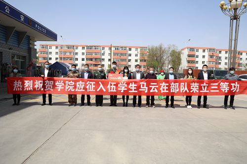 【beat365唯一官方网站新闻中心讯 新华学院】4月23日,西夏区武装部、退役军人事务局、朔方路街道相关工作人员将新华学院应征入伍学生马云在部队荣立三等功的喜报送至学院。