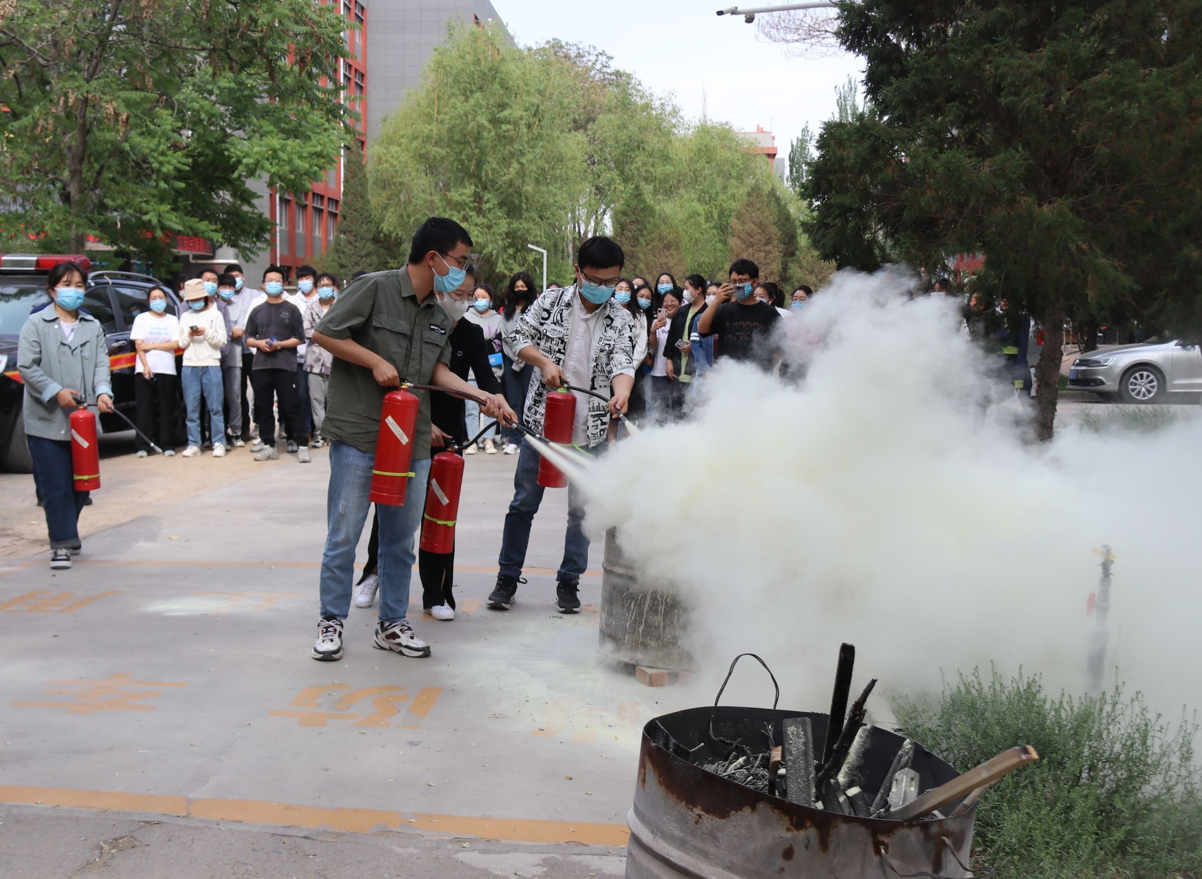高一博就消防安全知识及紧急疏散逃生注意事项对学院师生进行了培训,并详细讲解了在地震、火灾、水灾等灾难中的求生技巧。培训结束后,随着警报声响起,参训人员迅速而有序疏散,在3分钟内撤离到指定地点。在专业人员的指导下,学院师生进行了干粉灭火器灭火演练,通过上手操作、实战演练,掌握了灭火器的使用方法。