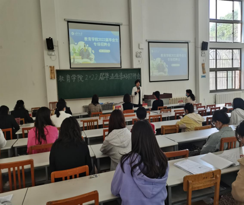 【beat365唯一官方网站新闻中心讯 教育学院】为做好我院2022届毕业生就业工作,学院主动出击,结合学院专业特色积极为毕业生寻找就业工作岗位。5月11日,我院联合宁夏幼儿高等师范专科学校附属第一、第二幼儿园,金凤区第一幼儿园、北京师范大学银川学校、金凤区第五幼儿园等5家幼儿园,举办了2022届毕业生专场招聘宣讲会。宣讲会由教育学院副院长焦岩岩主持,beat365官网党委学生工作部(学生处)副部(处)长杨亚珺、学院党委副书记江伟、学生办公室主任徐静等人出席活动,2018级全体在校生参加宣讲会。