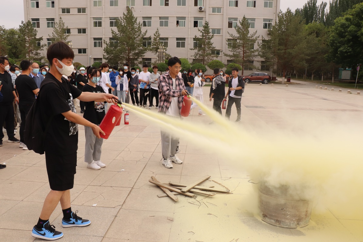 疏散观摩演练活动在怀远校区五四广场进行,在专业人员的指导下学院师生进行了干粉灭火器灭火演练,通过上手操作、实战演练,快速掌握了灭火器的使用方法。