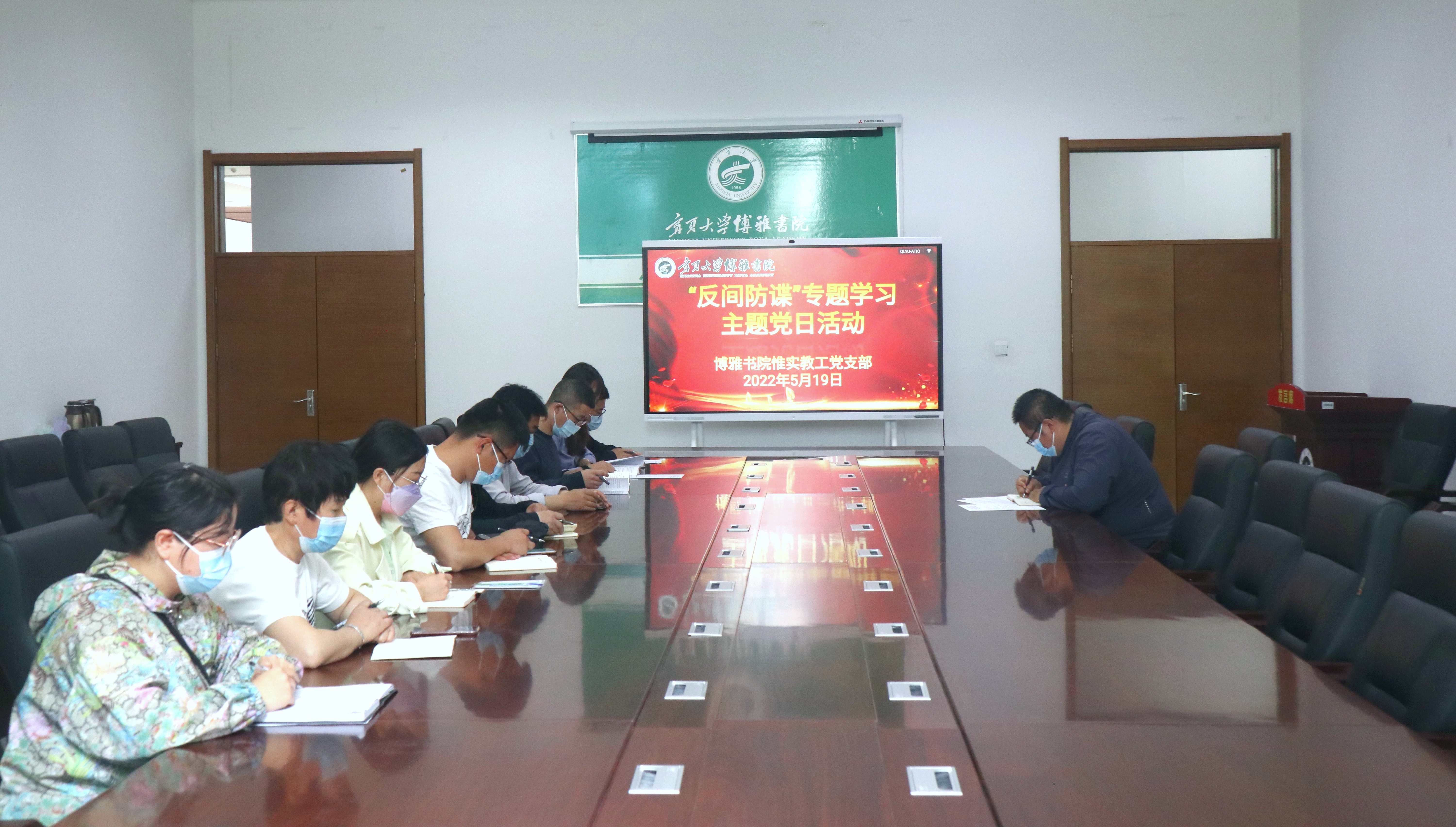 【beat365唯一官方网站新闻中心讯 博雅书院】为深入贯彻《beat365唯一官方网站2022年“保密宣传教育月”活动实施方案》相关要求及博雅书院党委工作部署,进一步提升支部党员防范间谍意识,持续培养党员干部养成保密习惯和保密自觉。惟实教工党支部于5月19日下午组织开展“反间防谍”专题学习主题党日活动,会议由教工党支部书记万江主持,支部全体党员参加。