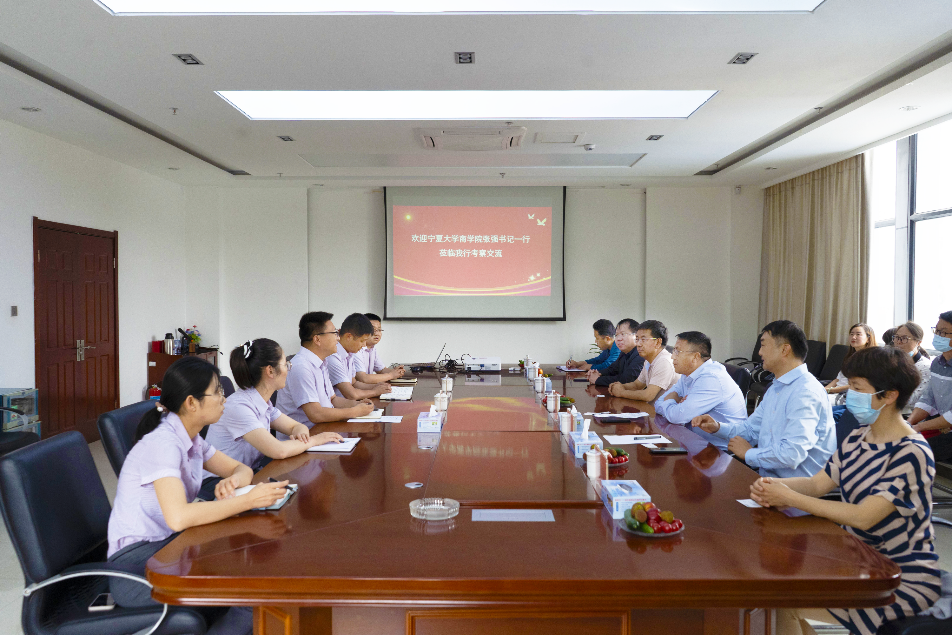 【beat365唯一官方网站新闻中心讯 商学院】5月26日,商学院联合博雅书院开展 “书记院长访企拓岗”专项行动,商学院党总支书记张强、院长赵军与博雅书院党委书记、院长李举一同率队先后走访了石嘴山银行股份有限公司中卫分行、江南好枸杞产业集团两家用人单位,商学院副院长房彦兵、周学勤,博雅书院副院长聂义民及商学院部分教师陪同走访调研。