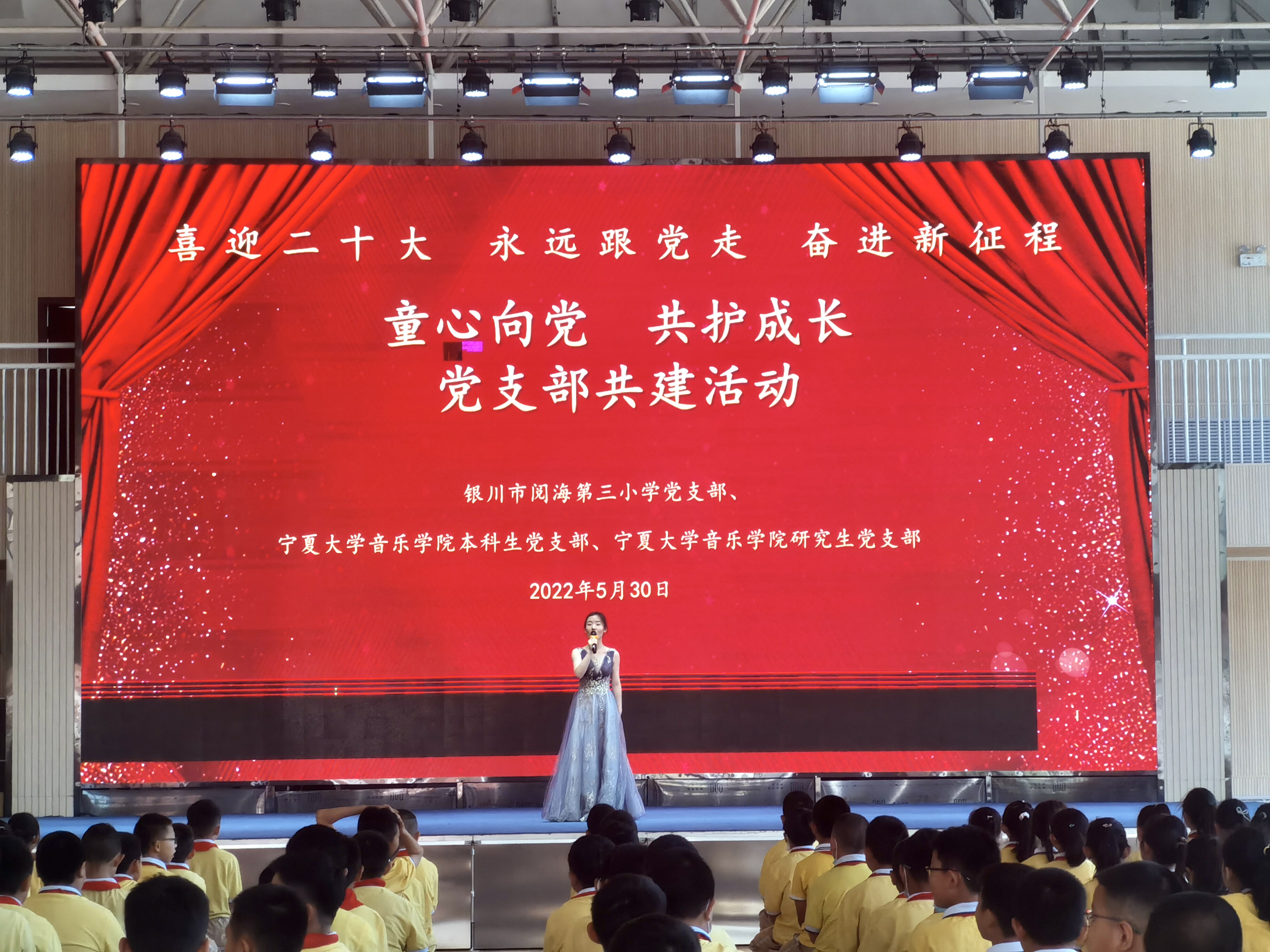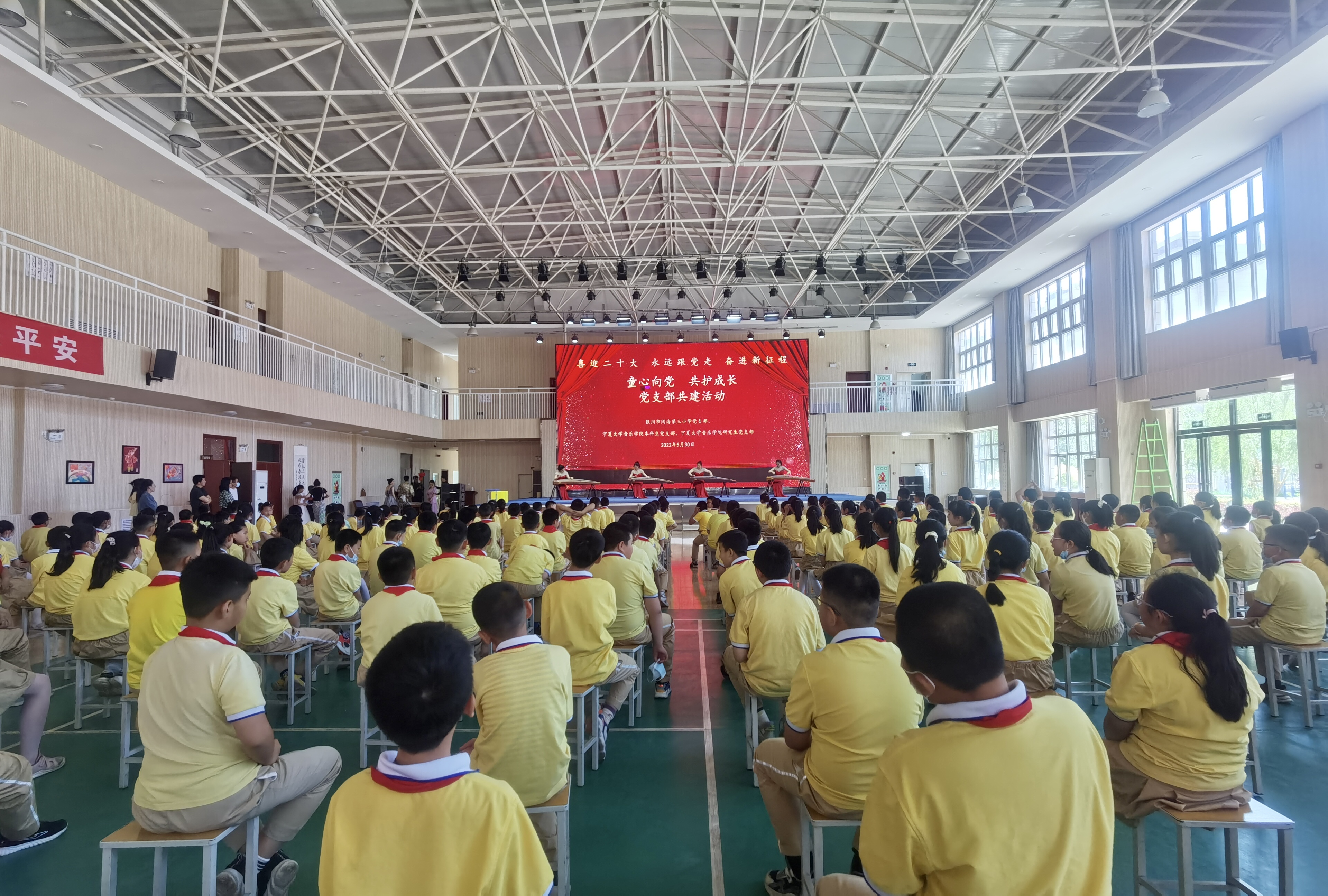 【beat365唯一官方网站新闻中心讯 音乐学院】5月30日,音乐学院研究生党支部、本科生党支部联合银川市阅海第三小学开展了“童心向党,共护成长”主题共建活动,学院党委副书记贾述道,研究生党支部书记王巳卉,本科生党支部书记刘利宁,阅海三小党支部书记何建喜,教务处主任齐玉玲,政教处主任高小毅,教职工团支部书记曹雪,四年级全体老师及学院部分学生党员,阅海三小四年级全体学生参加了活动。