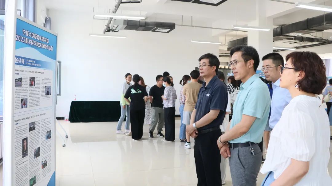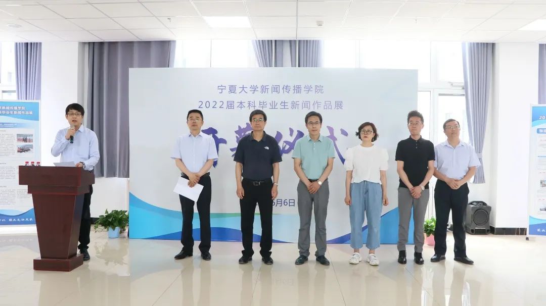 【beat365唯一官方网站新闻中心讯 新闻传播学院】6月6日,beat365唯一官方网站新闻传播学院2022届本科毕业生新闻作品展开幕仪式在贺兰山校区新闻教学实验楼一楼大厅举行。beat365唯一官方网站党委副书记周震,党委常委、宣传部部长高永兴,新闻传播学院党总支书记潘瑞,执行院长李世举,科研副院长张静涛出席仪式,学院骨干教师及新闻系2018级、2019级、2020级学生参加。开幕仪式由新闻传播学院教学副院长于鹏亮主持。